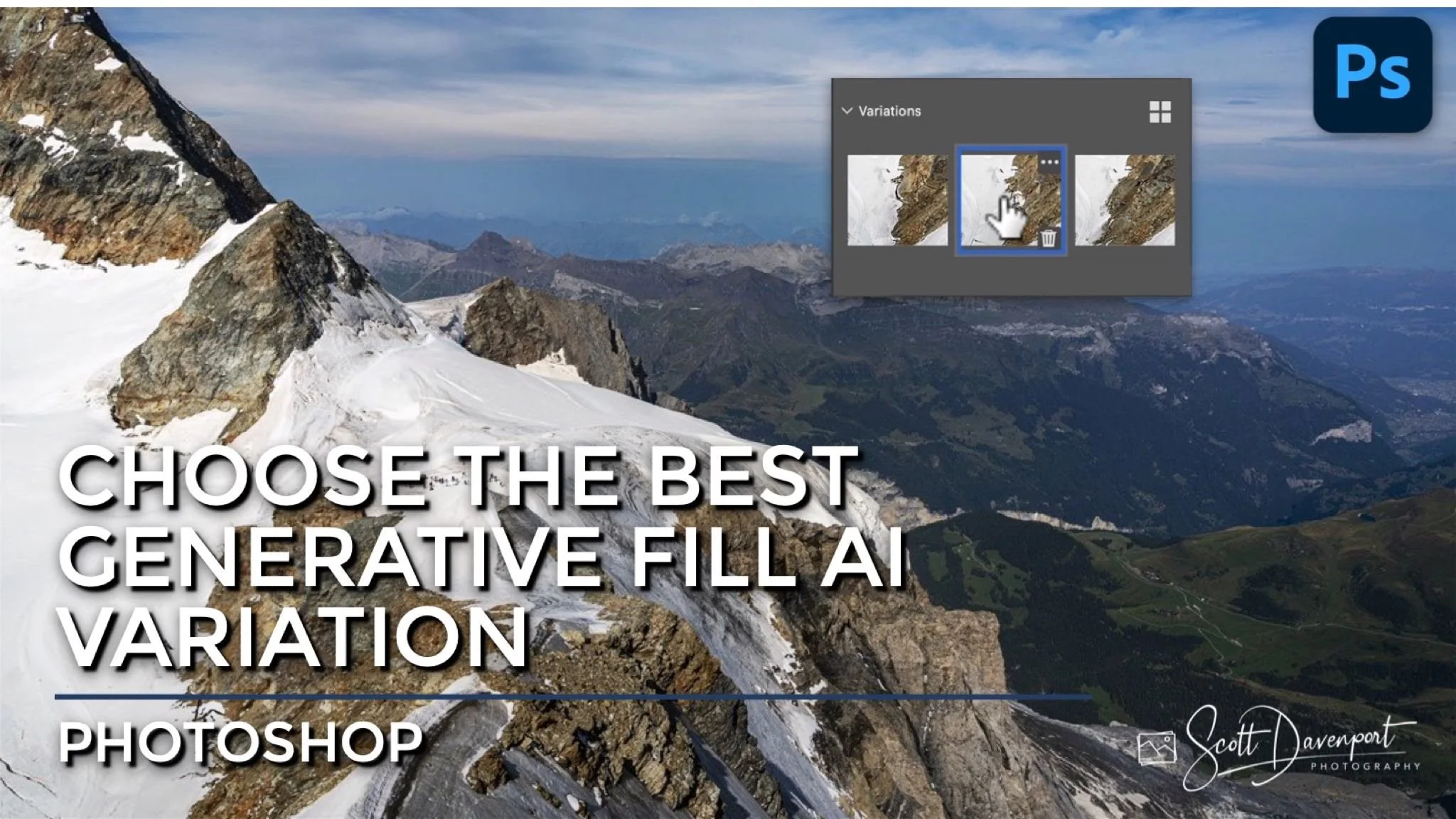 Audition each variation from Generative Fill by clicking on the choices provided by Photoshop.