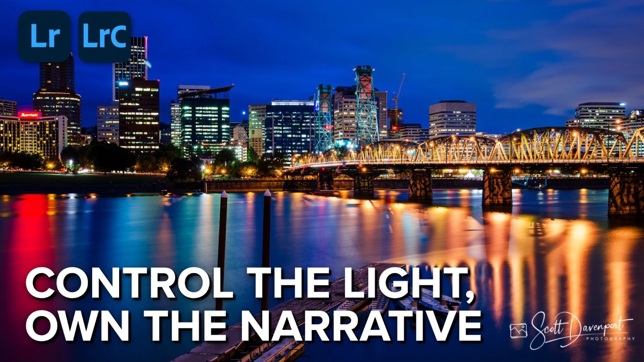 When you take command of light in your edits, you take command of the story your image tells. In this tutorial, I review a sequence of Lightroom adjustments to control tone, shape contrast to a blue-hour skyline and bridge scene from Portland, Oregon to better guide the viewer’s eye. The “before” version has tremendous potential — inky blues in the sky, deep shadows under the bridge, and scattered highlights in the skyline reflecting across the water — but the visual story can be stronger.