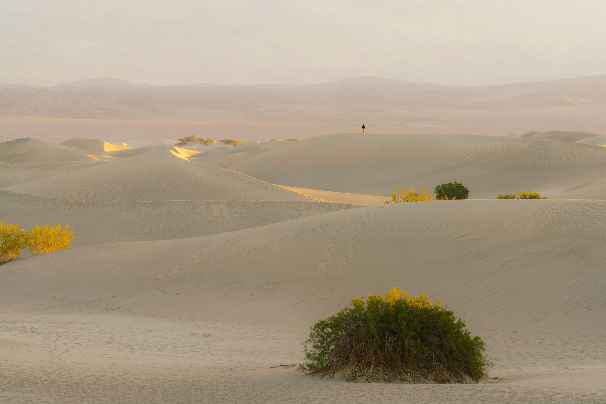 A part of landscape photography is getting yourself to beautiful locations. Travel is one aspect. Walking, hiking and climbing are another. Mesquite Dunes in Death Valley is an easy enough place to reach by car. Marching out across the dunes is a different story. Walking in soft, hilly sand is difficult!