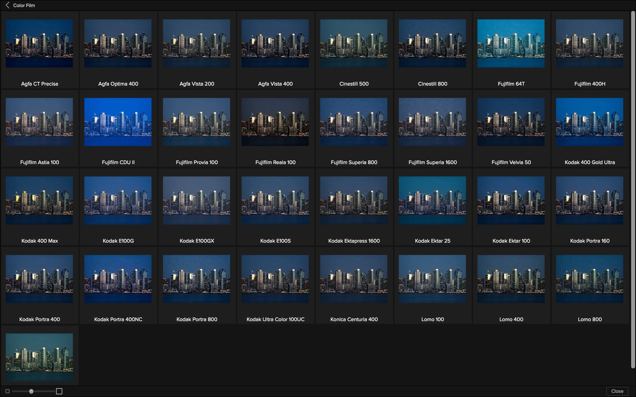 - NEW Color Film presets — These accurately reproduce the look of over 30 current and classic color slide and negative films