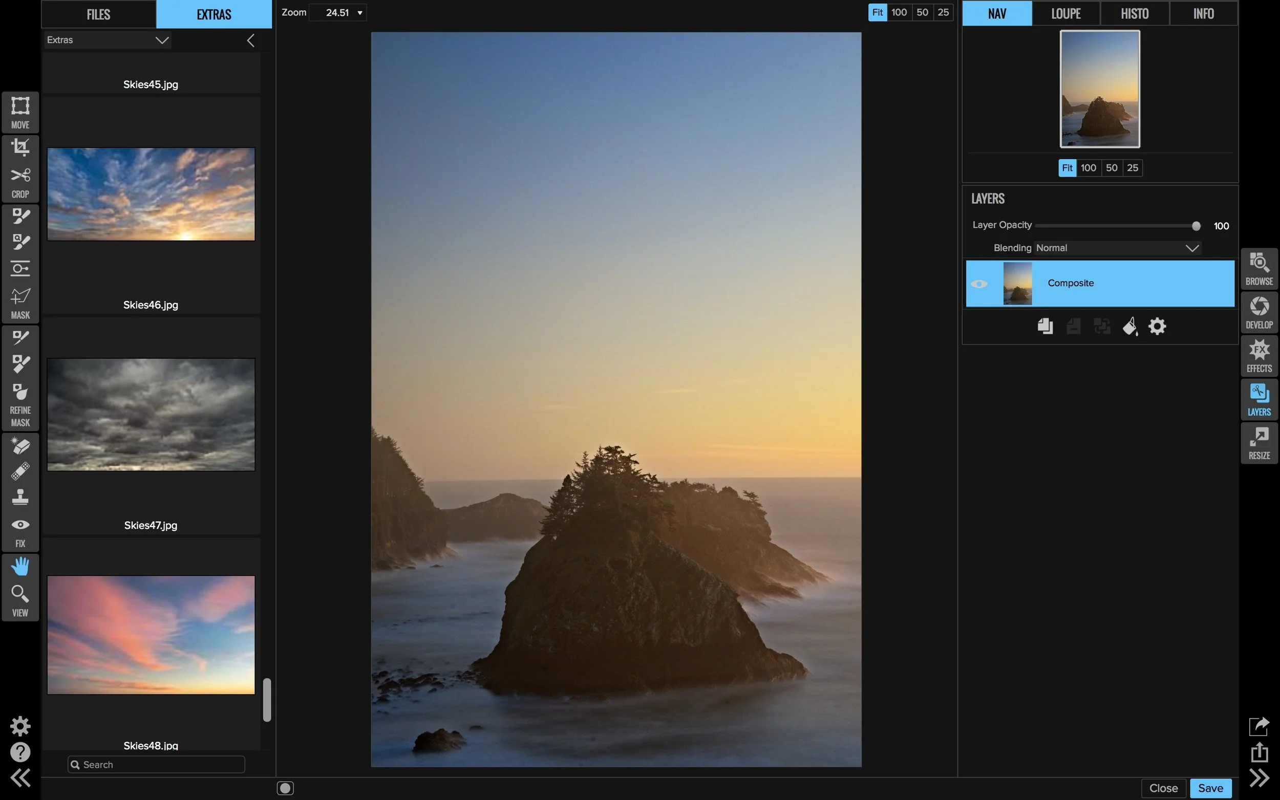 - Additional Skies — We’ve added a bunch of new skies to the backgrounds and textures libraries for replacing skies or simulating multiple-exposures.