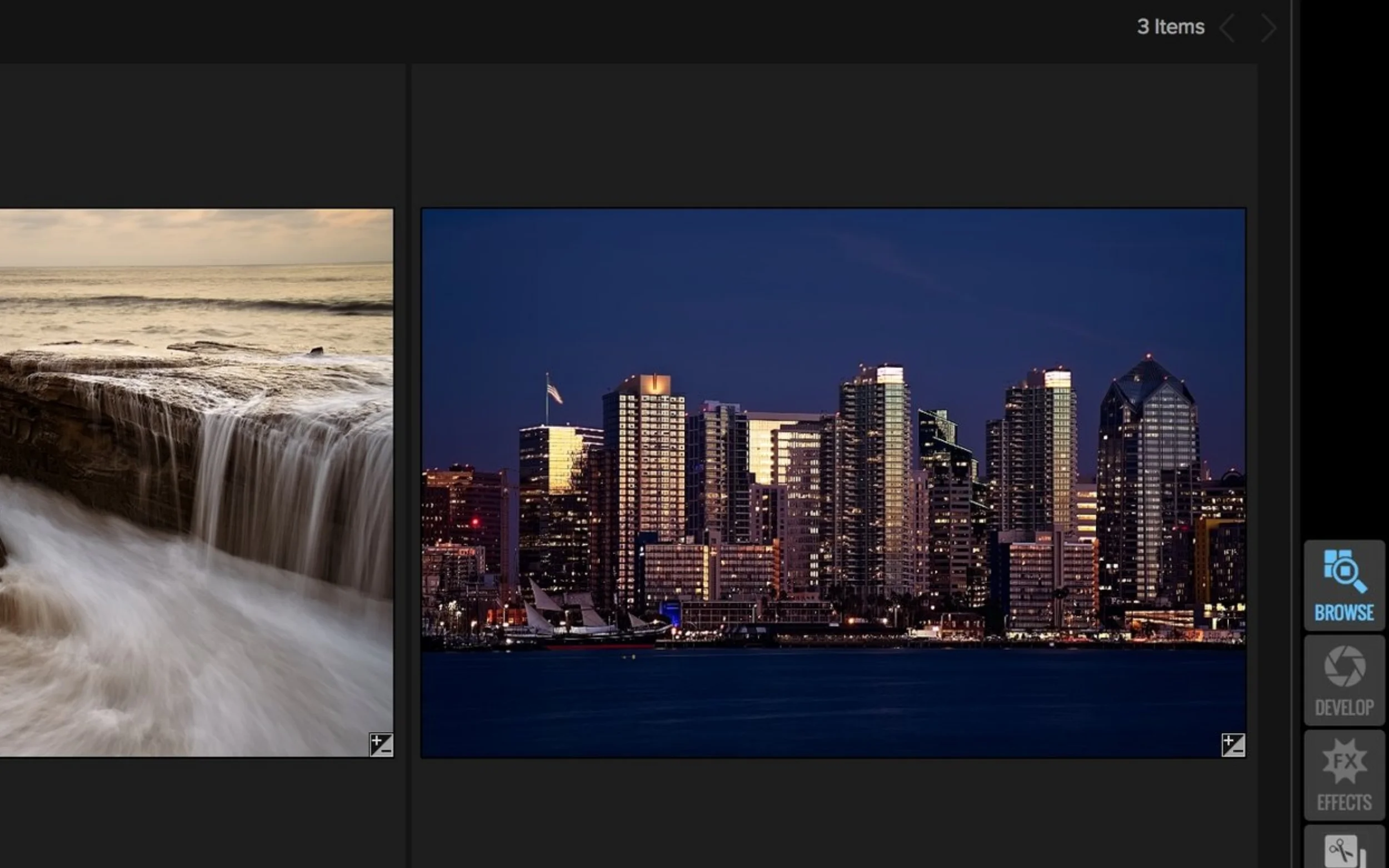 - Tell Which Photos Have Been Edited — Now photos that have been edited are identified with a badge in Browse. Also the reset items in the Settings menu are context-sensitive so you can see what kind of edits you have added to a photo.