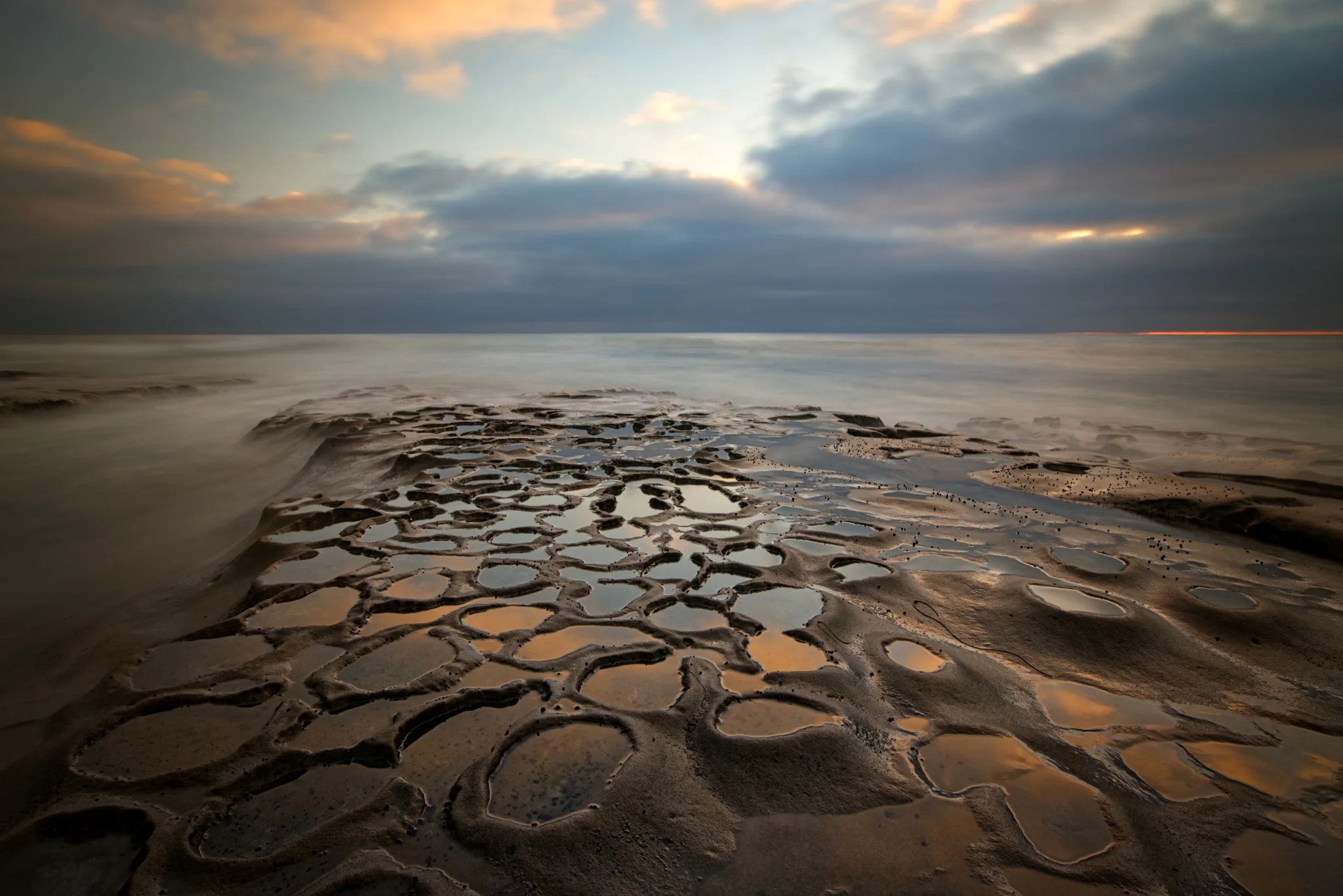 The colors in the sky weren't over the ocean on this afternoon. However, the potholes were catching some of the reflections from above. I captured some sweet oranges tones, and a few minutes later, the were gone.