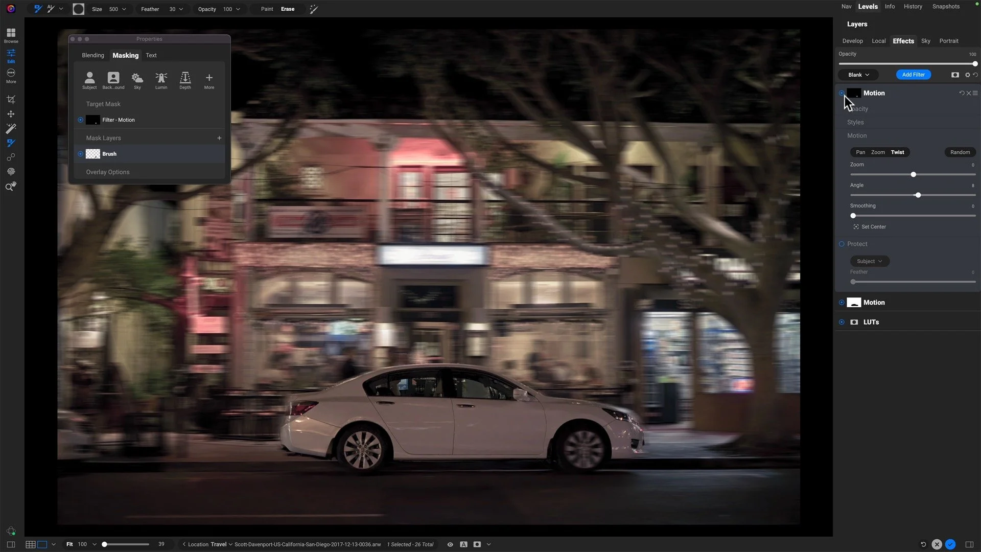 One of the most useful parts of the Motion filter is the Protect section, which lets you prevent the motion effect from changing either your subject or the background. It’s a one-click option that for many photos removes the need for masking.
